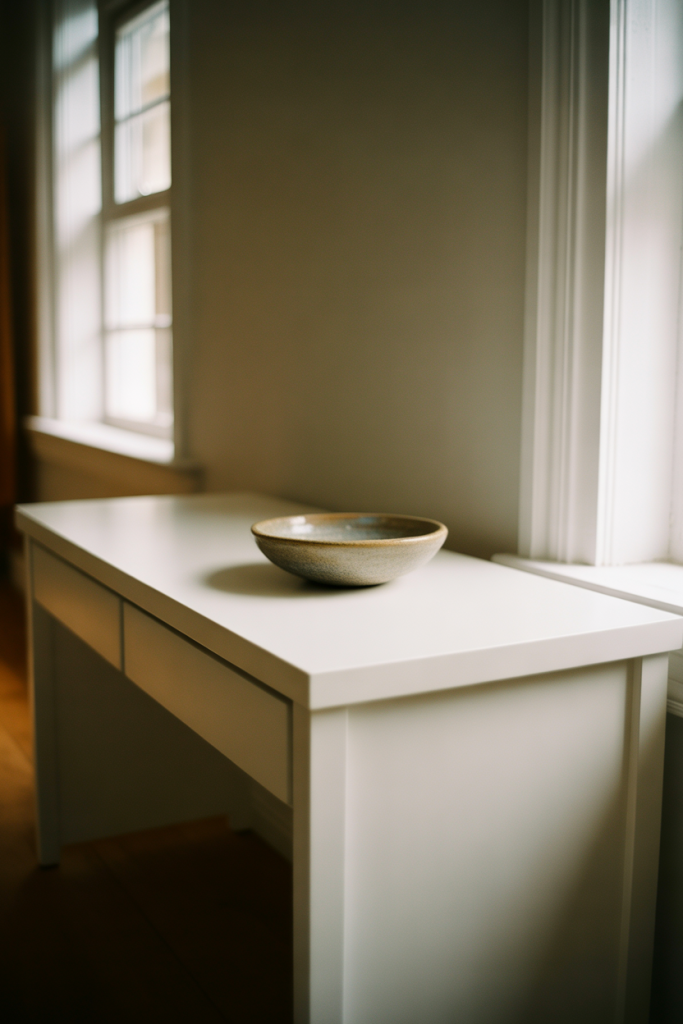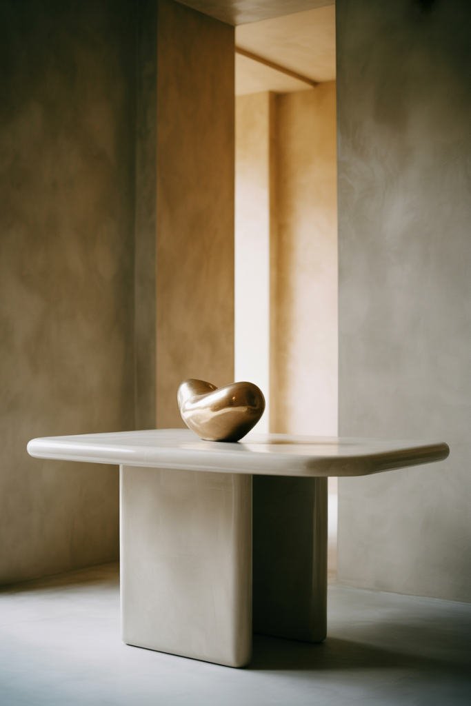 A sculptural entry table leans into design confidence rather than decoration. With a focus on form, material, and negative space, it embodies minimalist, modern, and white design. One strong object, a refined surface, and generous open space allow the entry to feel intentional and calm rather than sparse or unfinished.