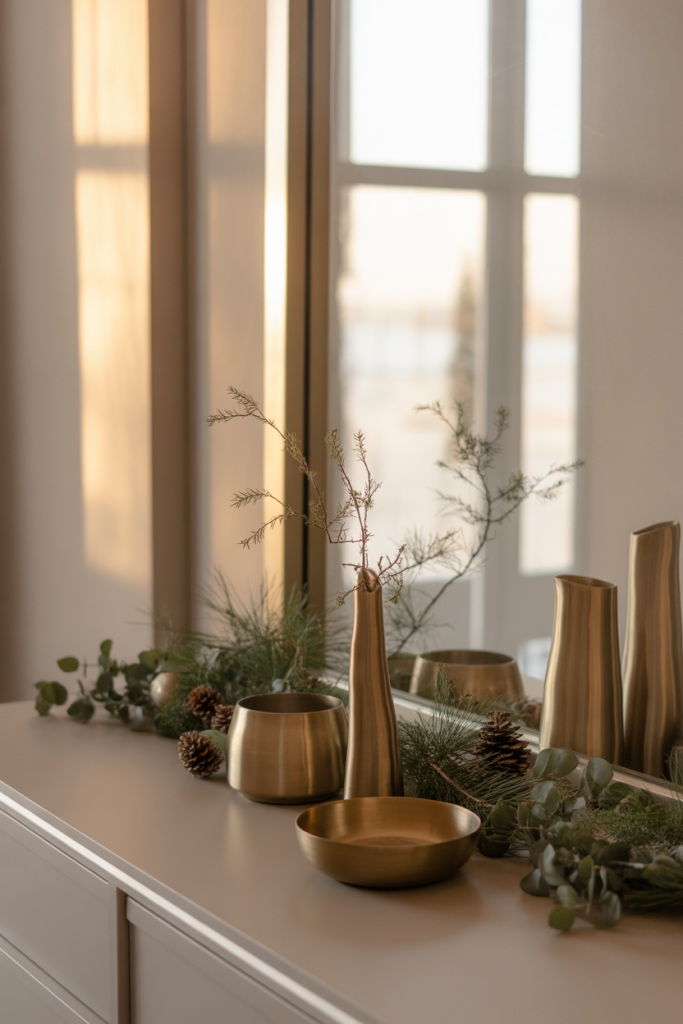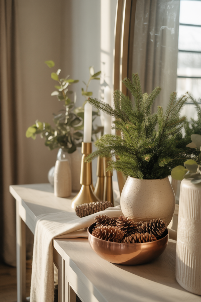 Creating a neutral base makes it easy to layer holiday decor without restyling everything. This approach works beautifully for homes that rotate between Christmas and Thanksgiving accents throughout the year.