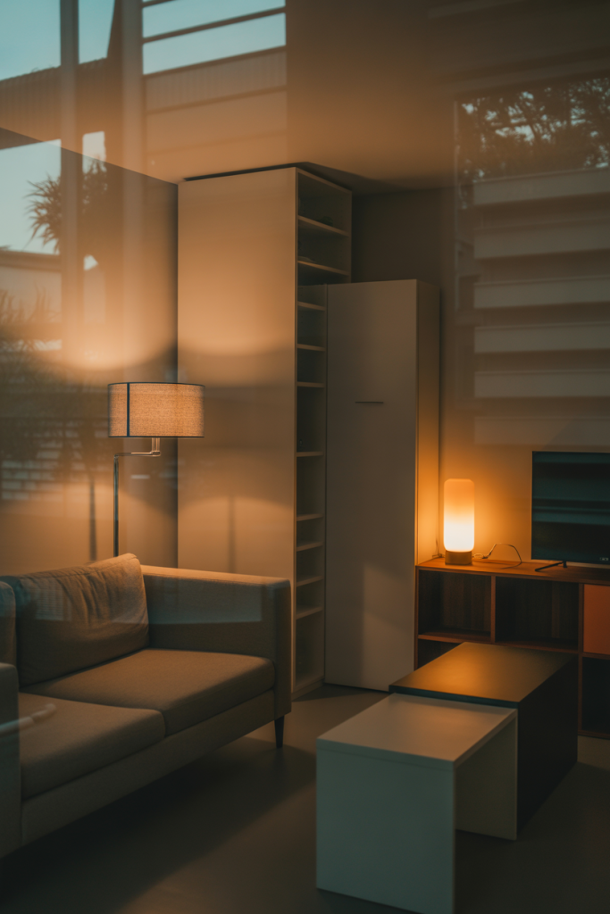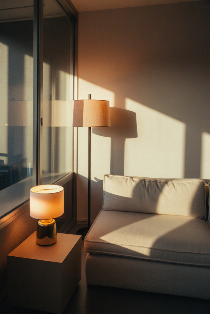 Lighting quietly defines apartment decorating on a budget in 2026, especially in a studio or minimalist layout where one overhead fixture isn’t enough. A combination of floor and table lamps can be paired with warm bulbs to elevate the modern interior feel.