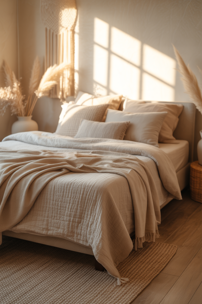 Apartment decorating on a budget in 2026 is not complete without soft layers, especially in a bedroom that is as of yet unfinished and is lacking in furniture. Cozy environments are made possible with the use of boho-inspired throws, pillows with texture, and beds that are layered. Soft textiles are easy to store, renter-friendly, and adaptable.