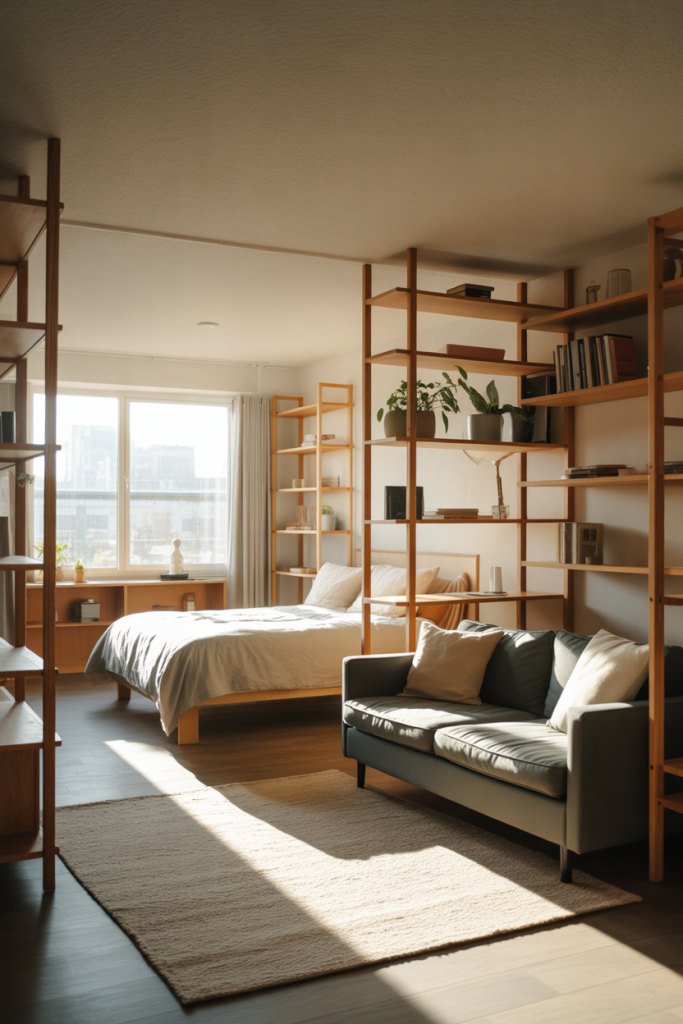 Defining zones is central to apartment decorating on a budget in 2026 in a studio. Using rugs, open shelving, or curtains supports a minimalist yet modern feel without building walls or spending heavily.