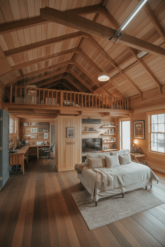 2. Rustic Cabin Feel with Loft and Shop Integration
