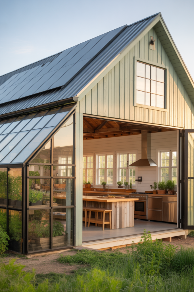 22. Modern Farm Barndominium with Attached Greenhouse