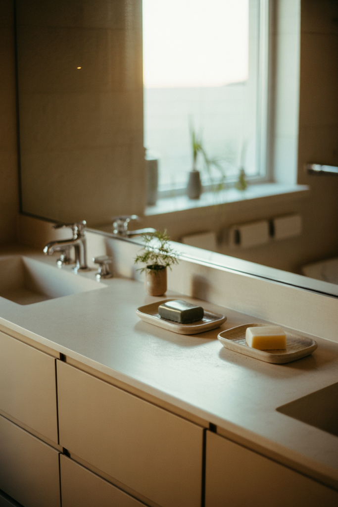 Practical insight matters here: limit each zone to what you use every single day. When surfaces are overloaded, they’re harder to clean and feel chaotic. Homeowners who succeed with this system edit regularly, swapping seasonal products instead of letting everything live out in the open.