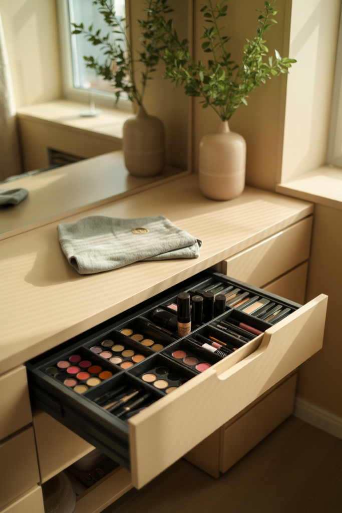 Practical insight: storing skincare horizontally in drawers protects products from excess light and heat. Homeowners who switch from countertops to drawers often notice longer product life and a calmer visual environment.