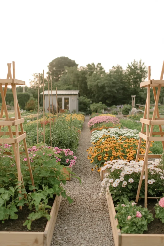 A dedicated cutting garden turns the Backyard into a personal floral studio. Rows of dahlias, zinnias, and seasonal blooms create a vibrant field designed for harvesting. The structured Layout may look utilitarian at first glance, but the result is undeniably Beautiful when bouquets fill your kitchen table each week.