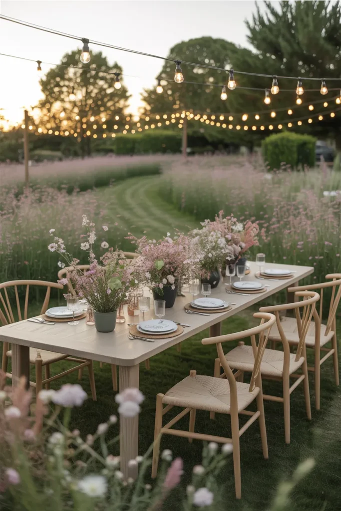 A relaxed meadow filled with soft blooms creates a dreamy Background for backyard dinners. The loose Design feels spontaneous yet welcoming, offering plenty of Inspiration for casual entertaining. This Beautiful approach blurs the line between garden and living space.