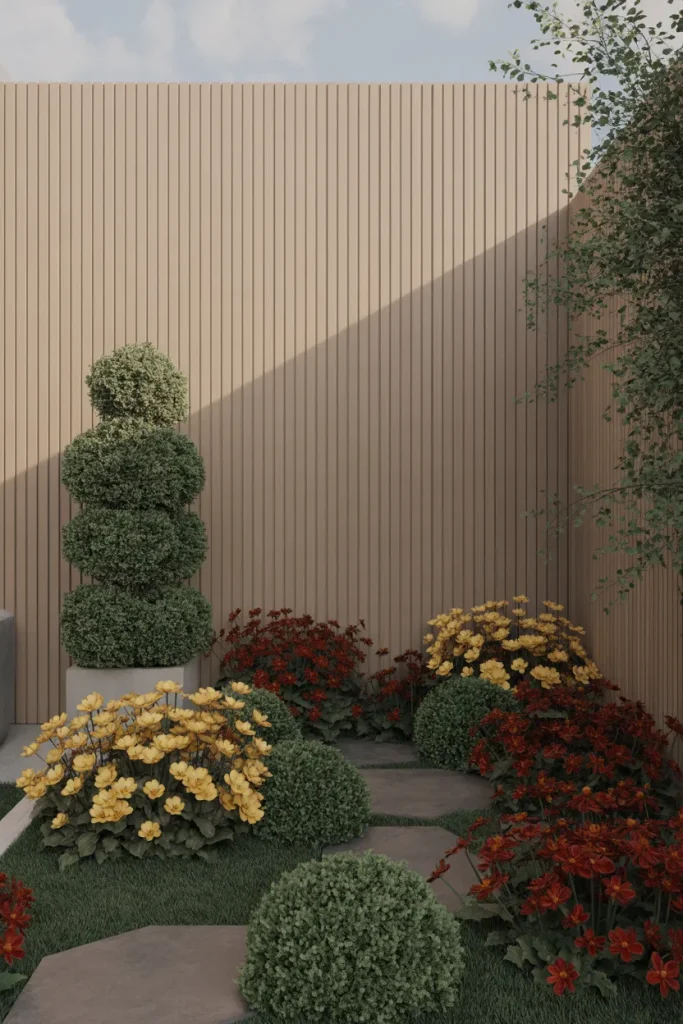 Taking cues from Klimt, some gardeners use patterned plant groupings against neutral fencing for dramatic impact. Gold-toned foliage and saturated blooms echo expressive Painting styles, transforming a plain boundary into a living artwork. The result is a layered Aesthetic that feels bold yet refined.