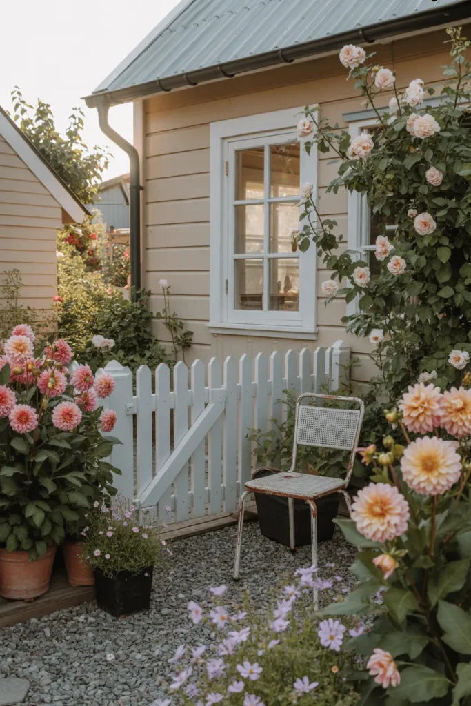 Few flowers command attention like a Dahlia, especially in a romantic Cottage setting. This look blends layered blooms, winding paths, and weathered fencing for a Beautiful garden that feels lifted from a Painting. It’s intimate and nostalgic, perfect for homes that already lean traditional or farmhouse in style.