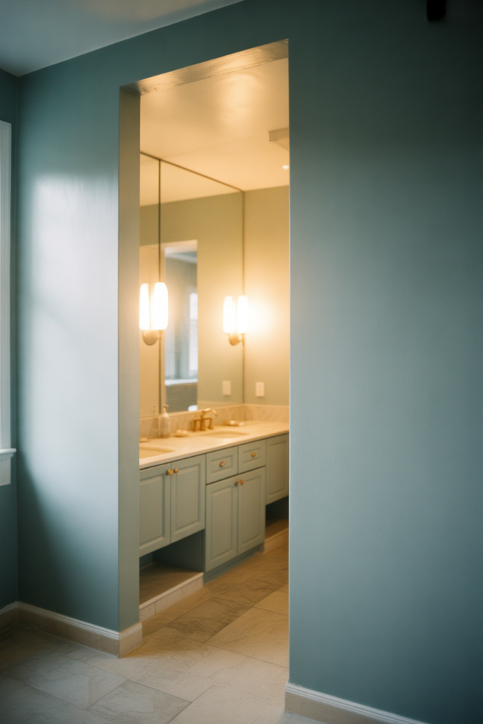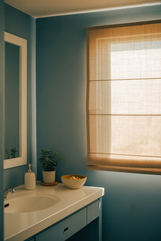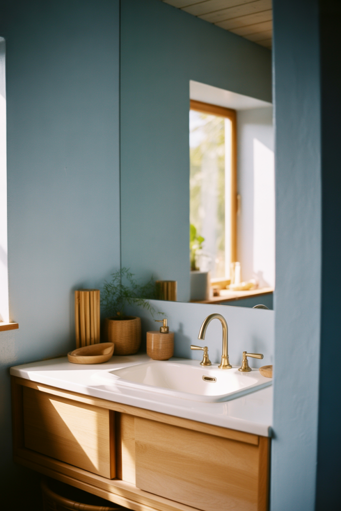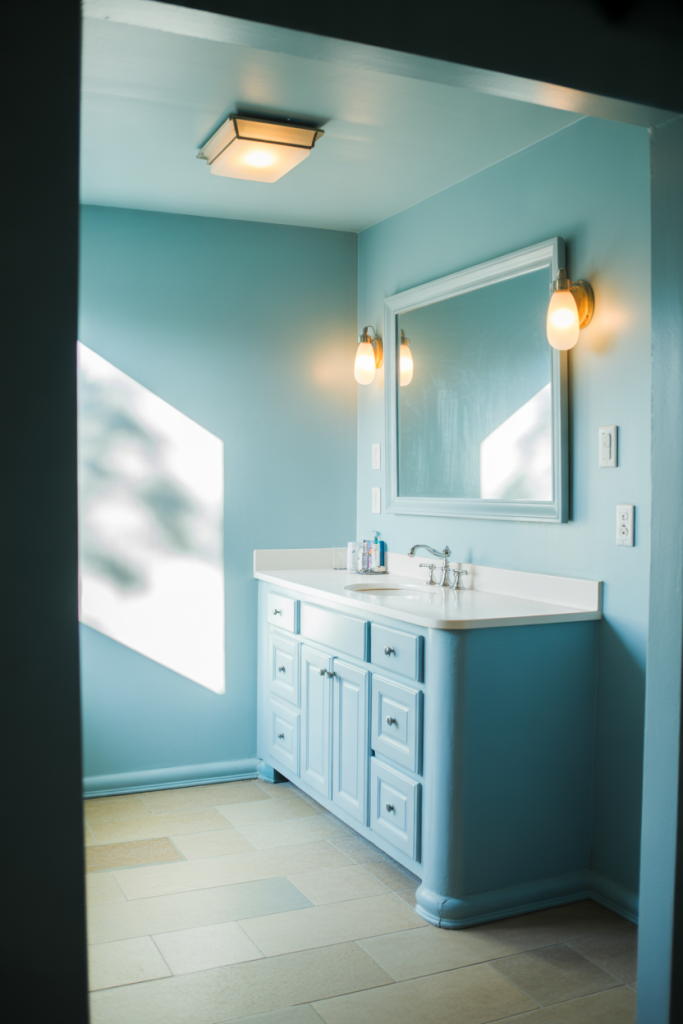 These ideas focus on how blue shifts depending on lighting throughout the day. Soft illumination highlights subtle undertones, making blue feel dynamic rather than flat. By pairing gentle color with thoughtful fixtures, the bathroom becomes expressive while staying calm and visually balanced.