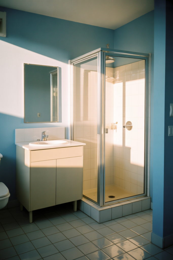 Pale blue is ideal for bathrooms where space feels limited. Light tones on walls reflect daylight and visually expand the room, creating openness without starkness. The color adds character while keeping the layout feeling breathable and uncluttered.