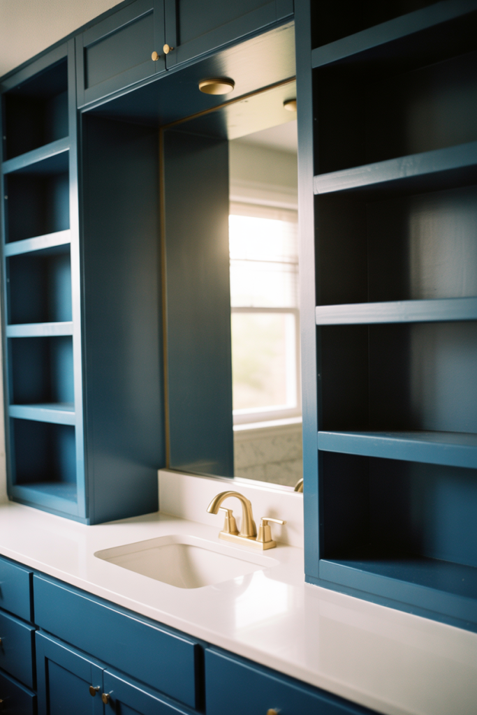 22 Navy Bathroom With Built-In Storage