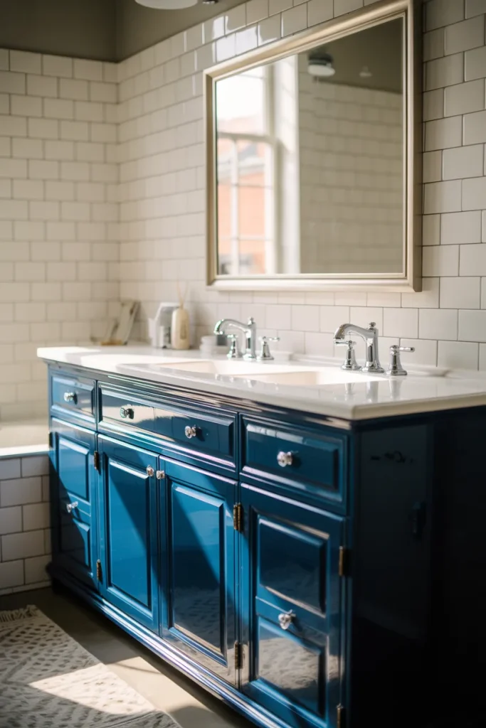A statement Blue vanity instantly energizes a bathroom, especially in a clean Modern layout. Add a slightly Colorful rug and pared-back Decor to balance the richness. The key is letting one element shine while everything else supports it quietly.