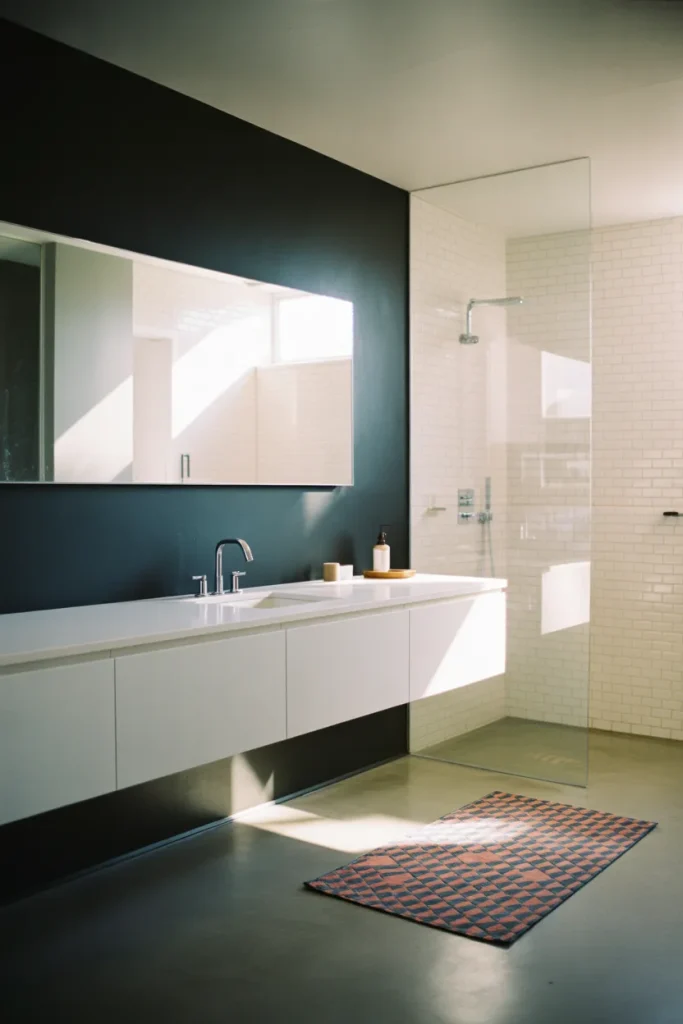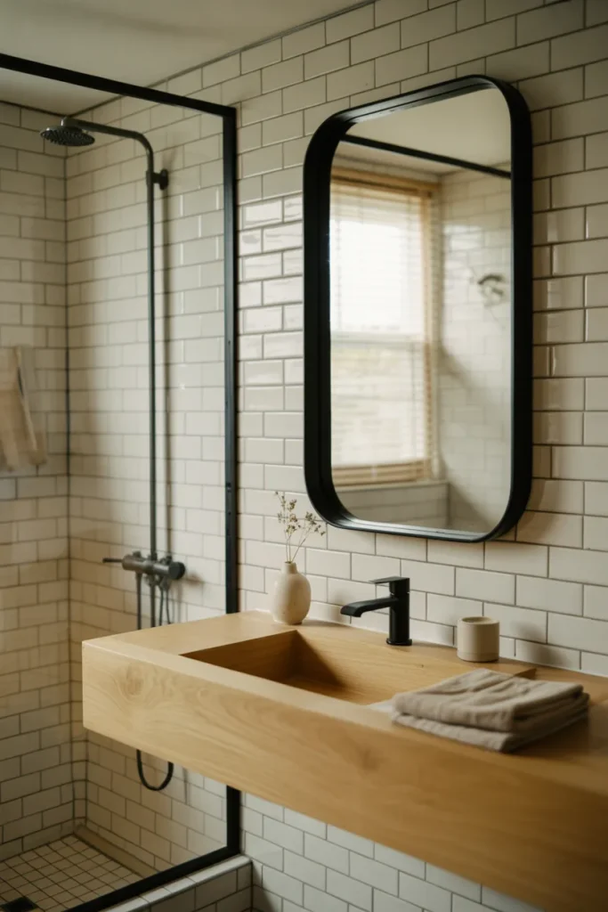 Design professionals often advise limiting black to frames and hardware. Too much can visually shrink a compact bathroom, while restrained use adds definition.