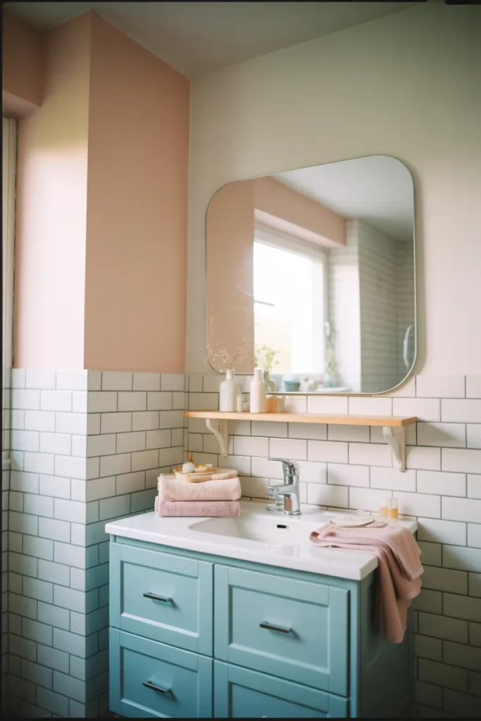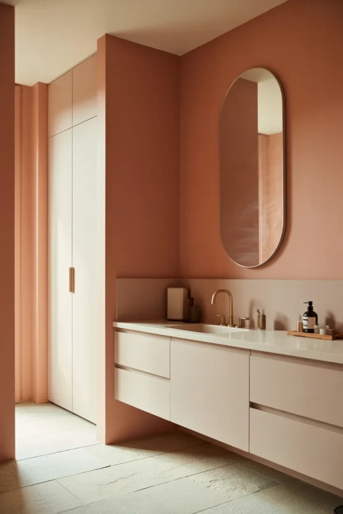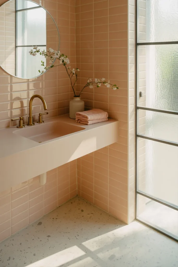 A blush-toned bathroom instantly feels uplifting, especially in Small spaces where every detail matters. Think pale Pink tiles, curved mirrors, and subtle brass accents that lean into a gentle Aesthetic. This look works beautifully in an Apartment where bold renovations aren’t possible, but paint, peel-and-stick tile, and textiles can do the heavy lifting. The result is sweet without being childish.