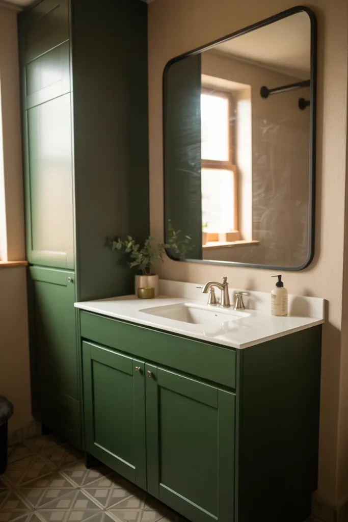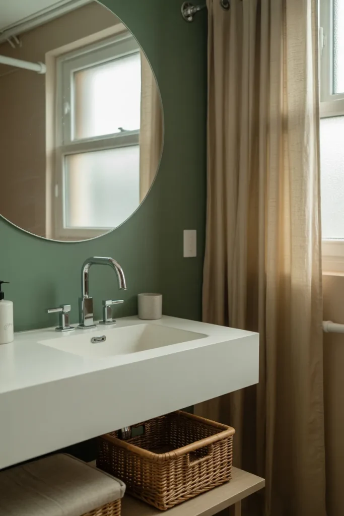 In a rental Apartment, a vanity refresh can completely change the mood. Swap hardware, add a framed mirror, and incorporate subtle Green plants for a touch of life. A lightly Aesthetic approach keeps it sweet, while a hint of Modern styling prevents it from feeling overly themed.