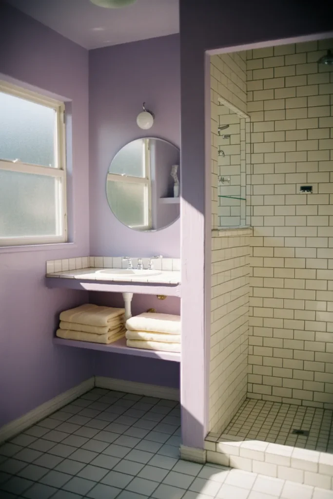 A whisper of lavender can make even the tiniest Apartment bathroom feel dreamy. This gentle Aesthetic works beautifully in Small spaces, especially when paired with Simple white tile and brushed nickel fixtures. The color feels playful yet calming, striking that sweet spot between cute and sophisticated without overwhelming the room.