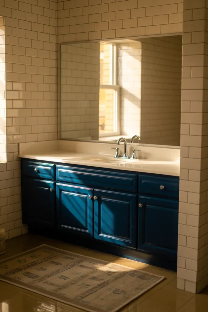 A statement Blue vanity instantly energizes a bathroom, especially in a clean Modern layout. Add a slightly Colorful rug and pared-back Decor to balance the richness. The key is letting one element shine while everything else supports it quietly.