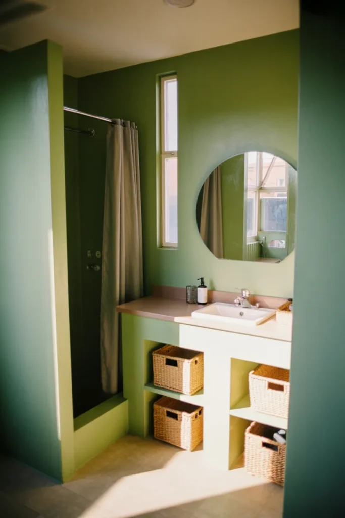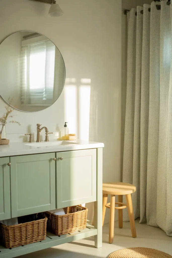 In a compact Apartment, cute doesn’t mean cluttered. A pared-back Modern layout with soft Green accents and curated Decor can make even a builder-grade bathroom feel intentional. Floating shelves, a slim vanity, and coordinated textiles keep the room airy while adding personality.
