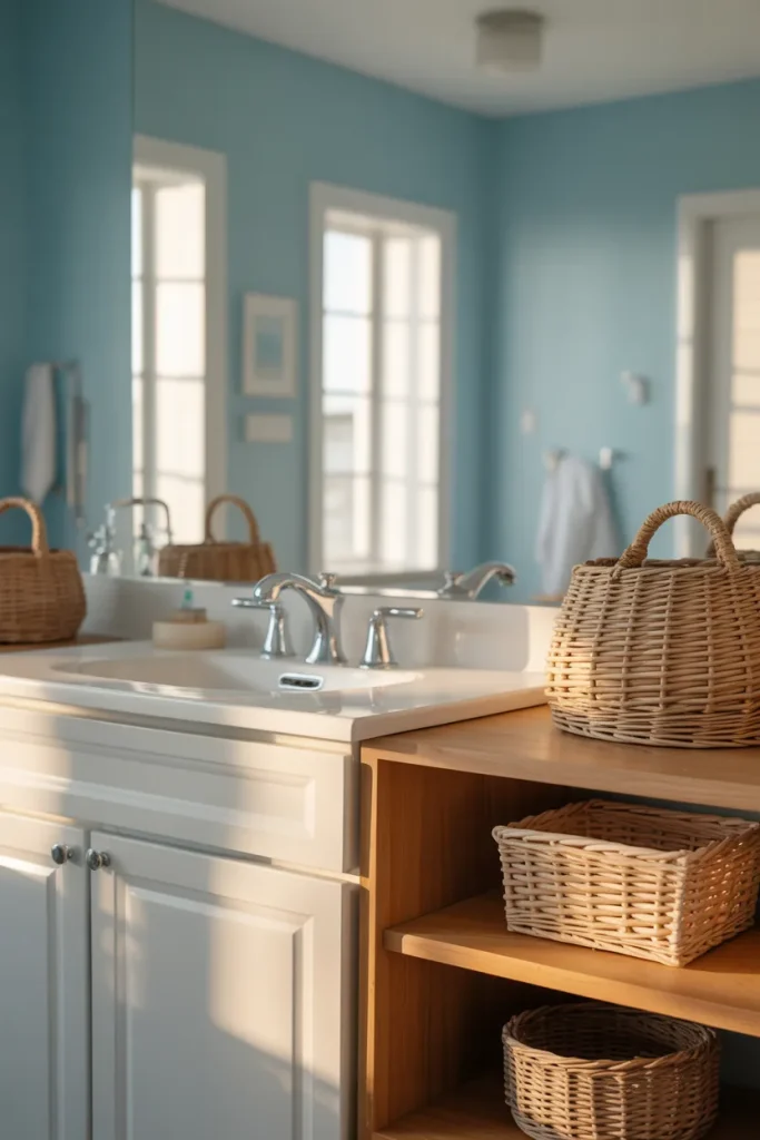 Look for washable paint and durable finishes, especially around sinks where splashes are inevitable. Spending a little more on quality fixtures upfront often saves money long-term, since high-traffic family bathrooms see heavy daily use.
