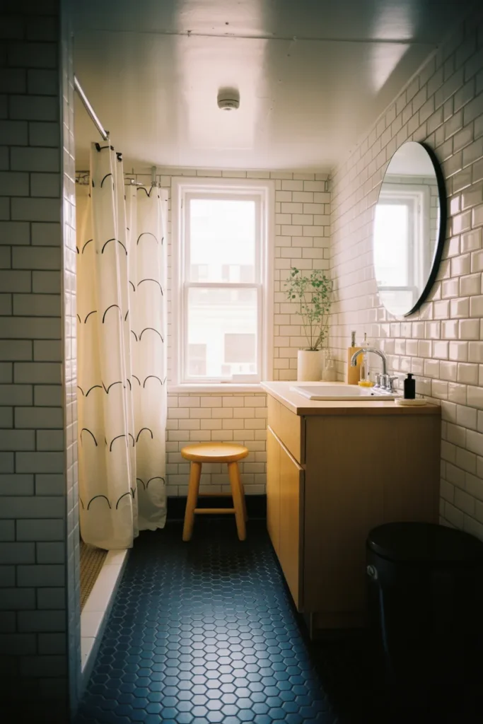 If you’re on a budget, consider peel-and-stick floor tiles to test the look before committing. Many American homeowners start with removable options in guest bathrooms, then upgrade once they’re confident in the style. It’s a low-risk way to experiment with pattern.