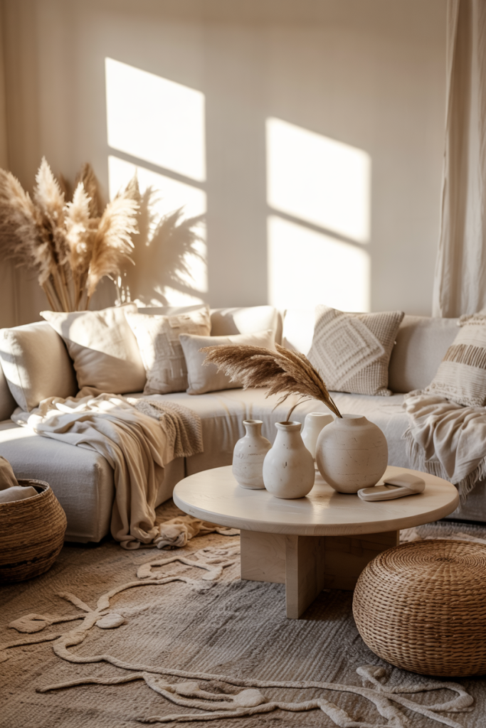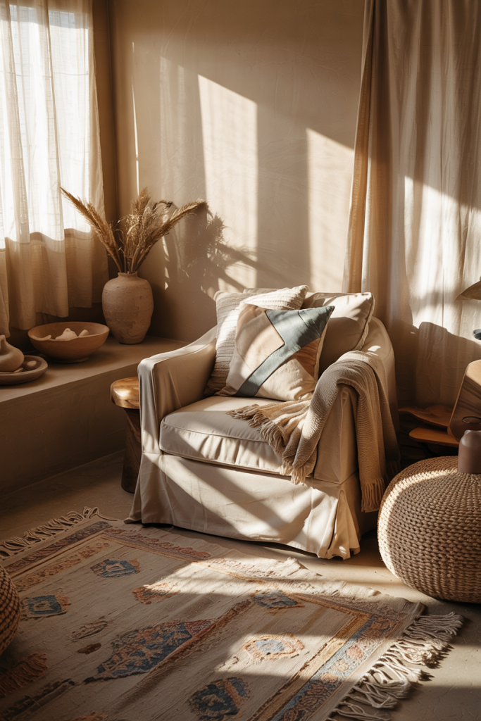 This idea embraces warm neutrals, layered fibers, and subtle curves that bring a grounded feeling. Incorporating touches of Earthy notes, bits of Modern detail, and softly textured Decor keeps the palette fresh without overwhelming the room. It works well in both compact spaces and wider layouts where comfort is the priority.