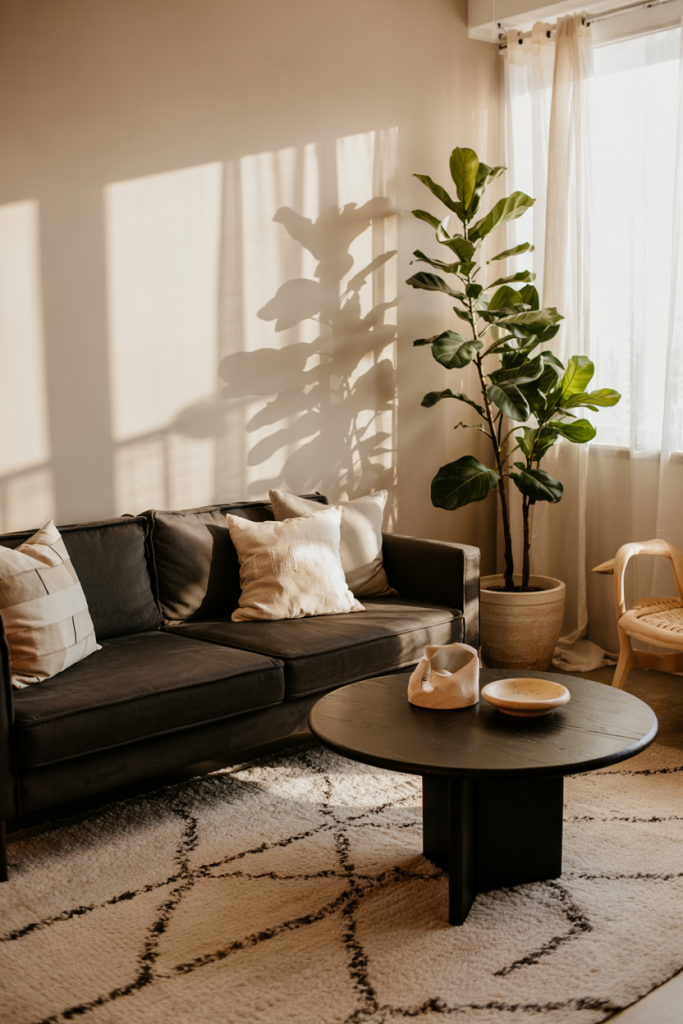 Real homeowner behavior shows that mixing structured furniture with soft rustic textures helps rooms feel both tidy and relaxed. It appeals to people who want clean lines but still crave warmth and personality.