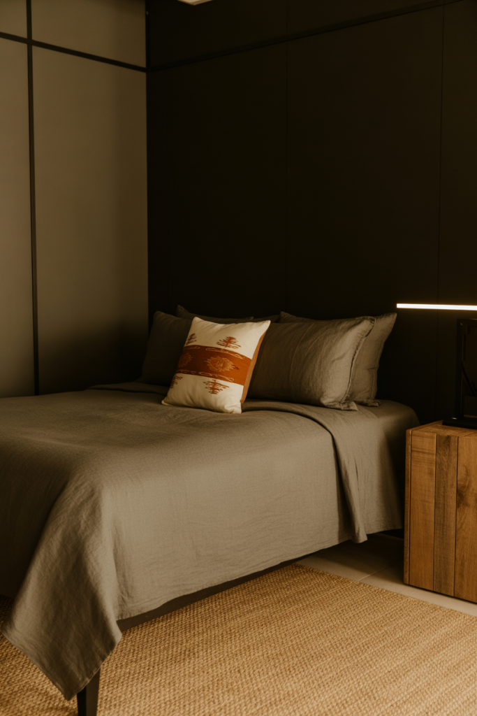Budget angle: darker textiles can make affordable pieces look more premium, especially when mixed with matte finishes.