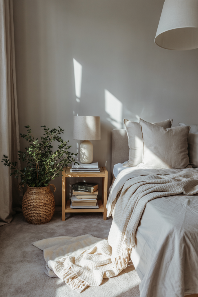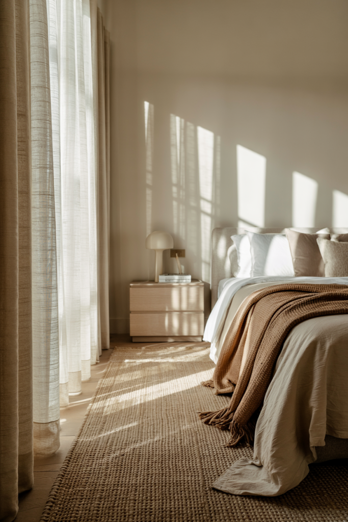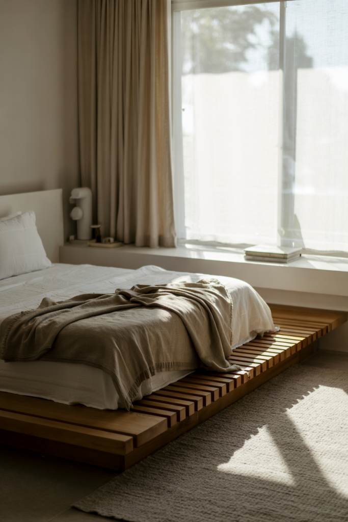 This style works best in homes where sunlight softens during the afternoon—common across many regions in the U.S. The natural warmth enhances minimalism and keeps the space from feeling cold.