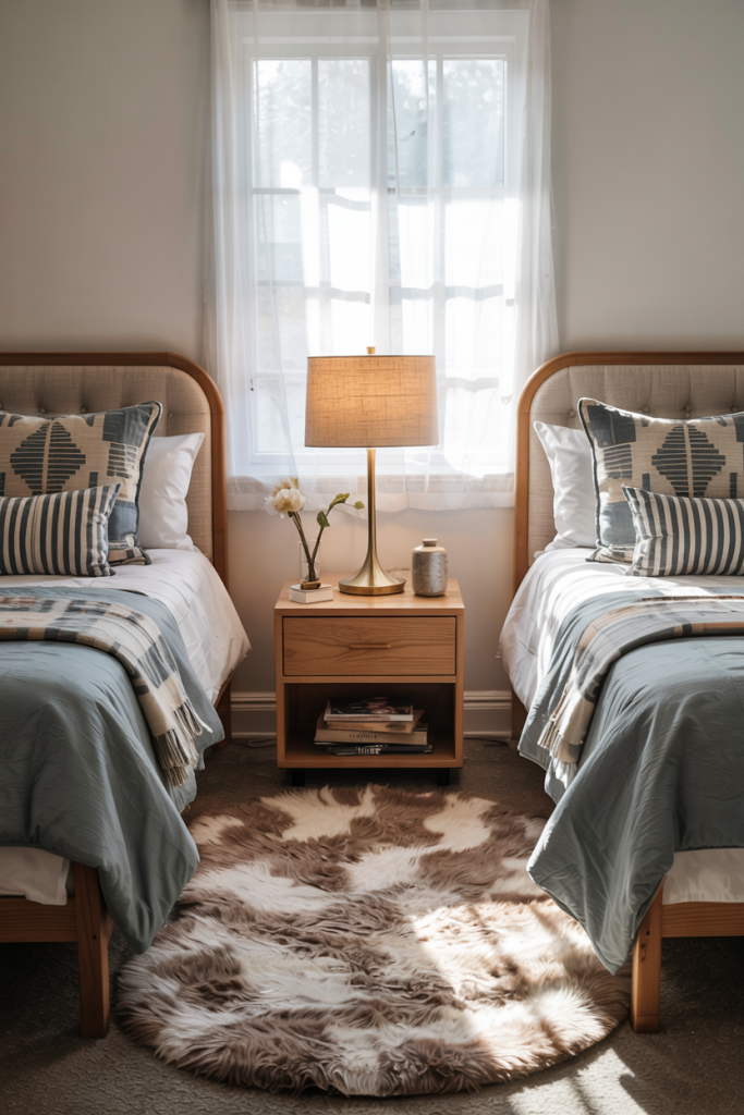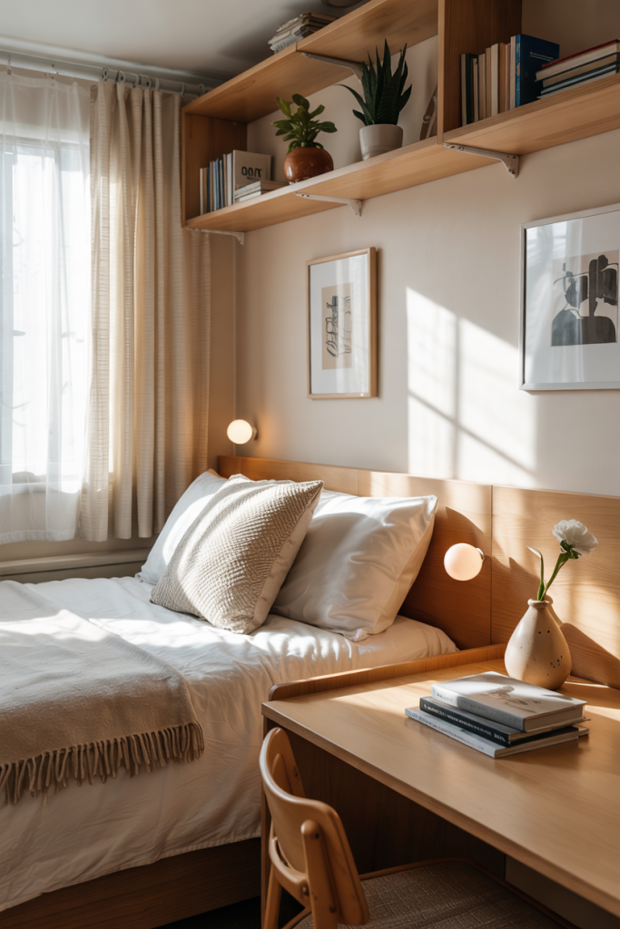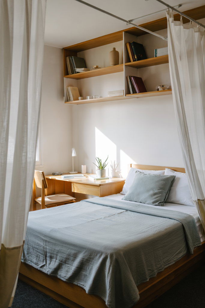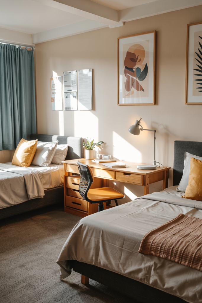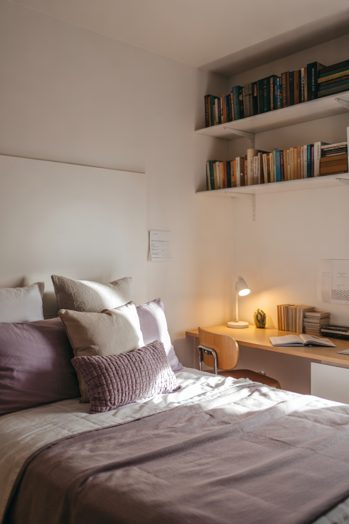 This approach is particularly useful in a double room. When both roommates use the same color theme, the room appears more cohesive and refined—it almost becomes like an apartment, rather than two corners.