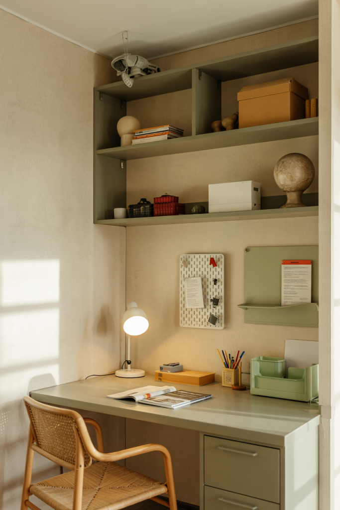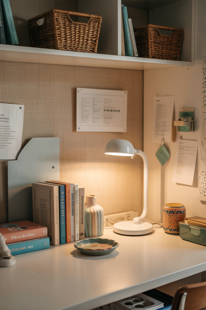 Students opting for the earthy, nature-inspired theme would find an organized study nook filled with green an excellent way to change up the room. The green tones cause tiny rooms to appear more peaceful.