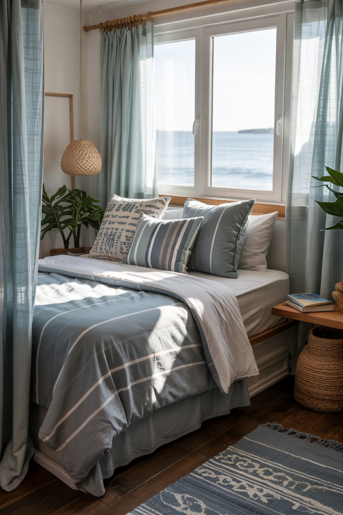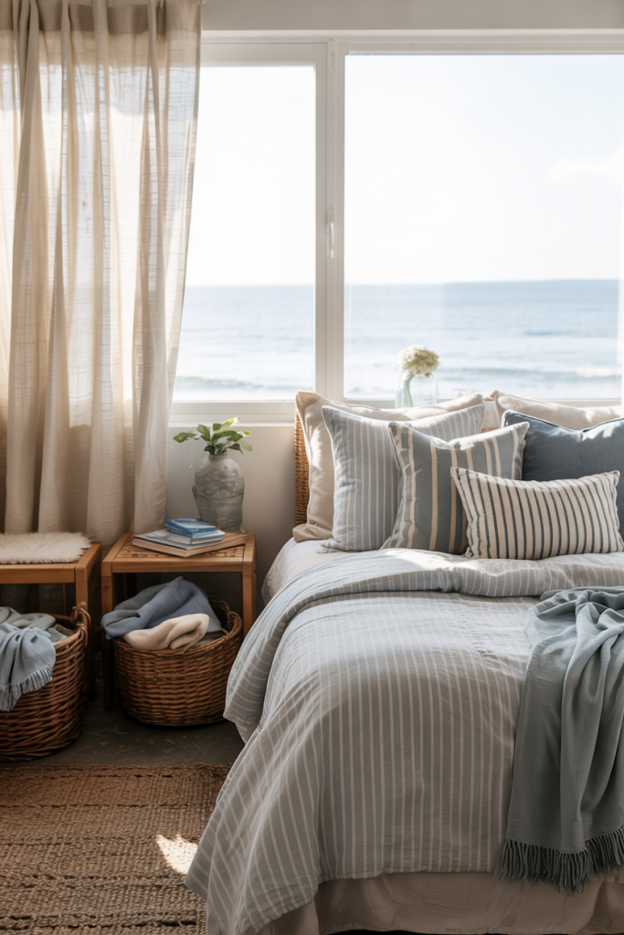 When they use coastal pieces, they bring in a fresh and light atmosphere even in compact rooms, mirroring the lightness and freshness of the ocean in their coloring. Blues provide a cool effect, particularly when they include texture through natural fabrics and unadorned furniture.