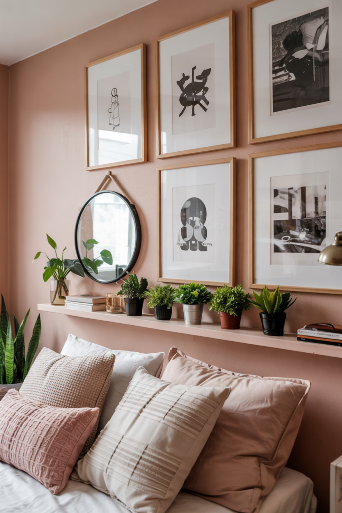 Pink décor has transitioned from the pink bubblegum world and now exudes modern, soft, and lively characteristics. The incorporation of a print, fabric, and mirror wall develops a trendy and lively feature in the room. Mixing the soft pink with the concept of a pink and a touch of a cute personality develops a personalized space characterized by charm.