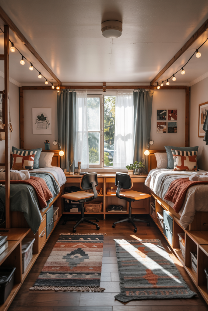 Sharing the room does not mean the rooms have to lack style. Using color the right way, the students could use different designs that work well together.