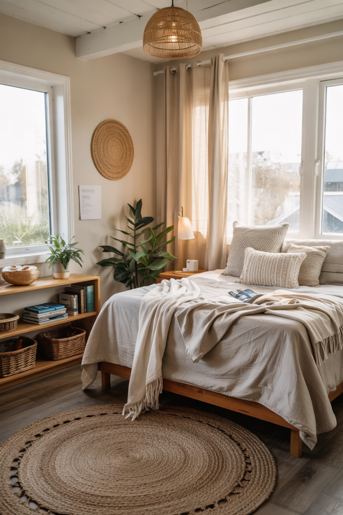 Budget considerations make this style very budget-friendly. That means that most of the major components, such as throws, throw pillows, and wicker baskets, cost little and can be mixed and matched in a way that provides lots of style without requiring much furniture.