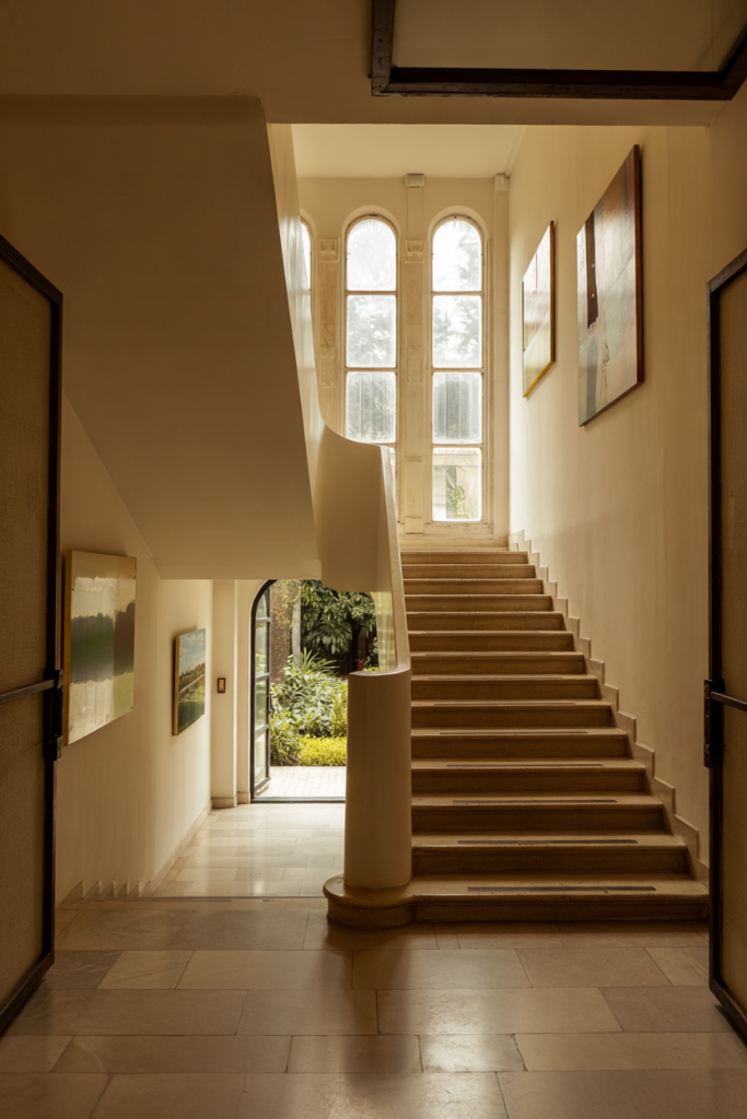 When stairs meet elegance, your foyer becomes a curated gallery. A single large painting, minimalist railing, and under-stair console table bring artistry to function. It’s a modern luxury touch that defines refined living.