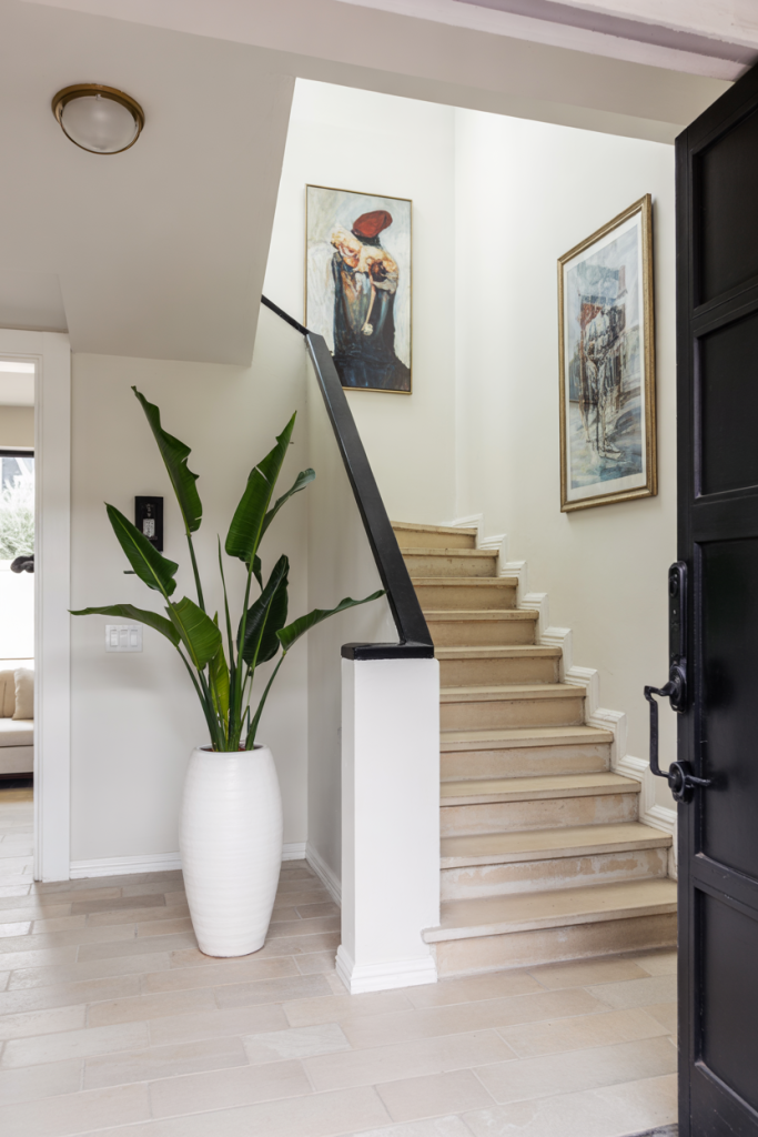 When stairs meet elegance, your foyer becomes a curated gallery. A single large painting, minimalist railing, and under-stair console table bring artistry to function. It’s a modern luxury touch that defines refined living.