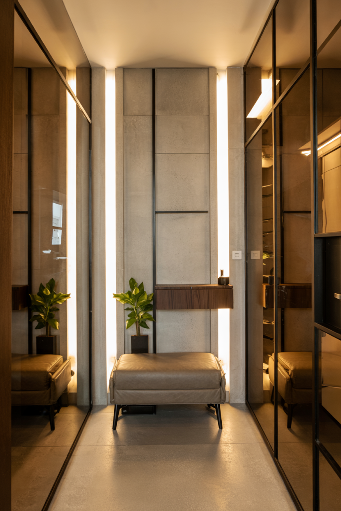 A modern luxury entry is about creating equilibrium, not gold_COLLECTION._ A marble floor, narrow consoles, or subtle lighting will speak volumes about the design, which will be absolutely silent about its richness.The design is absolutely apt for Indian or American styles, with partitions made of glass coupled with warm colors, creating the effect of welcoming warmth.