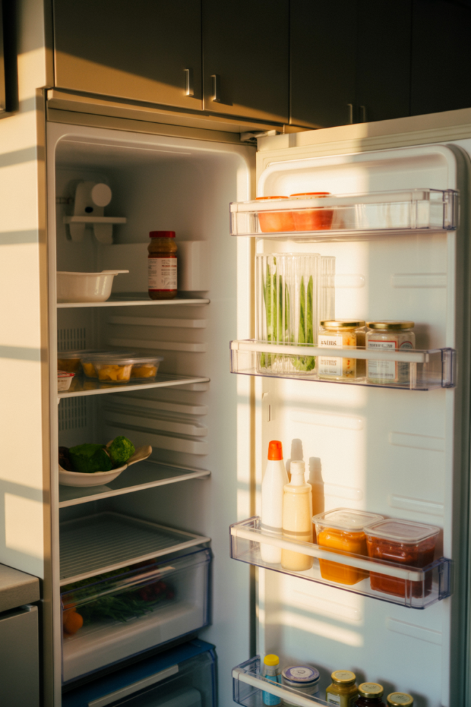 In Fridge Organization 2026, the door is a healthy choices zone. Instead of only keeping condiments, many homes now place yogurts, cut fruit, and quick snacks there. This neat and easy-to-maintain layout also supports better habits.