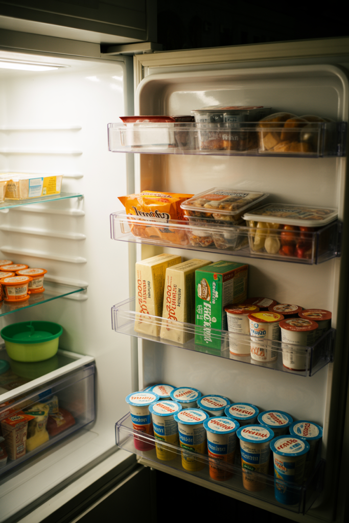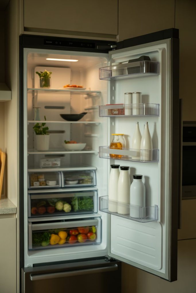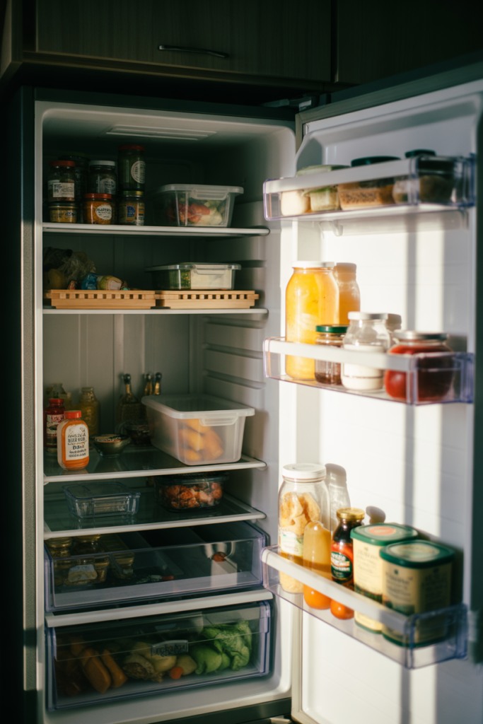 In Fridge Organization 2026, the door is a healthy choices zone. Instead of only keeping condiments, many homes now place yogurts, cut fruit, and quick snacks there. This neat and easy-to-maintain layout also supports better habits.