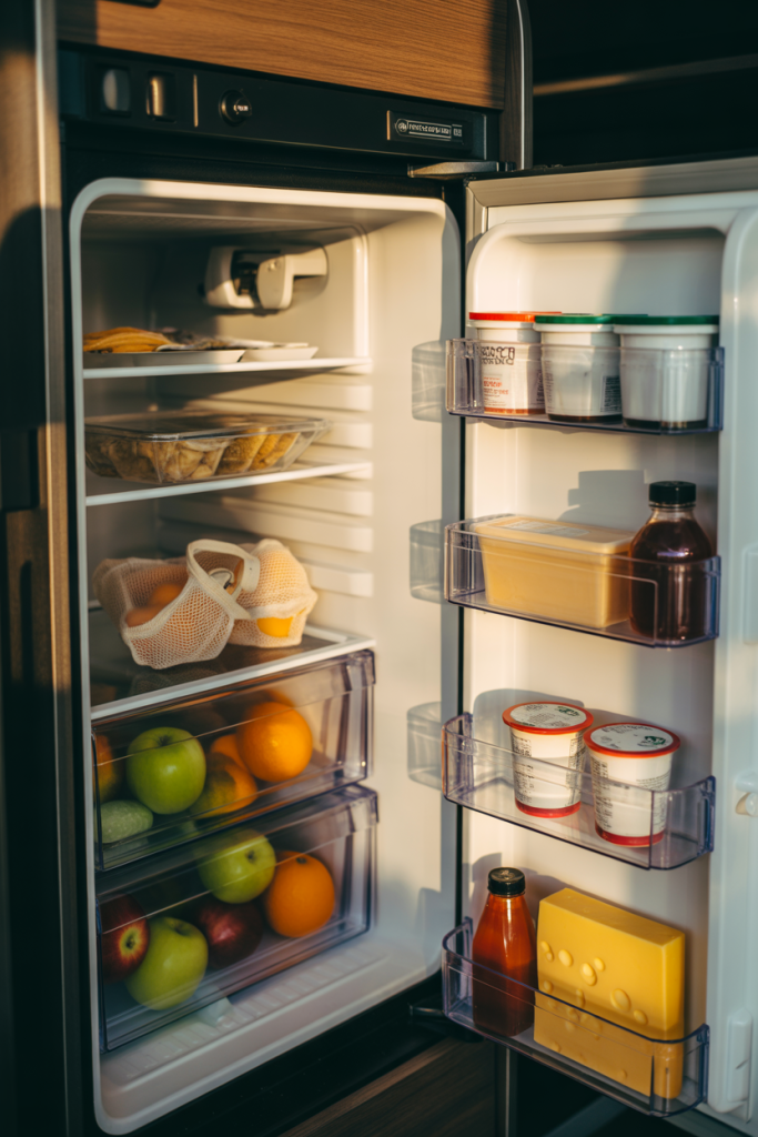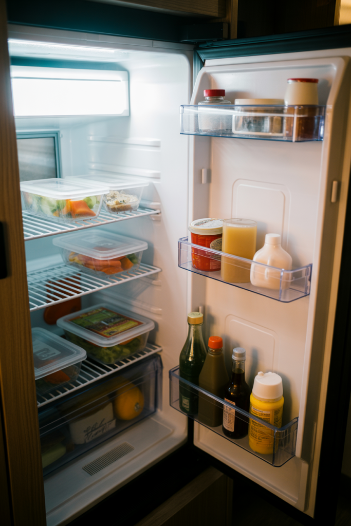 For extended travel, Fridge Organization 2026 adapts to RV life with tighter systems. Using lockable bins and shallow containers keeps items stable inside during motion, without sacrificing accessibility.
