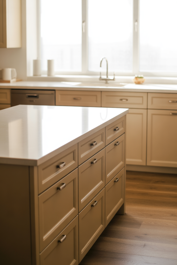 Soft cream-painted cabinets, on the other hand, accompany wood floors and white countertops, making a classic American statement. That timeless hue is warm and nostalgic-the kind of kitchen your grandmother adored and that is now being reinterpreted for 2026.