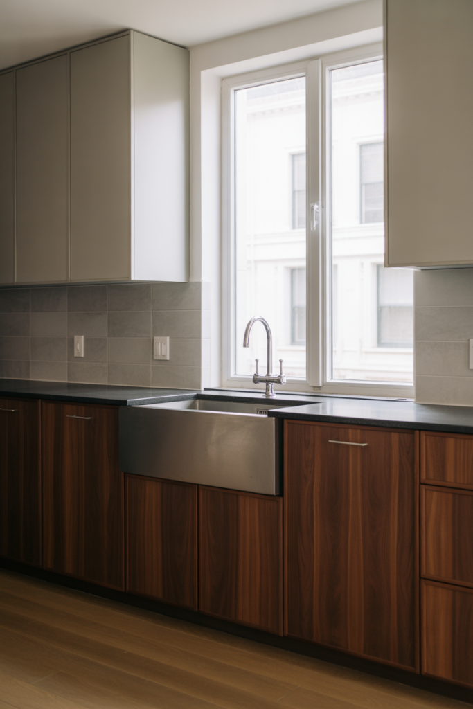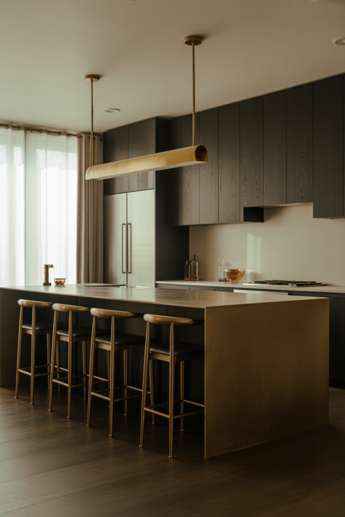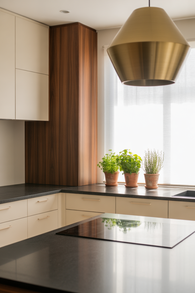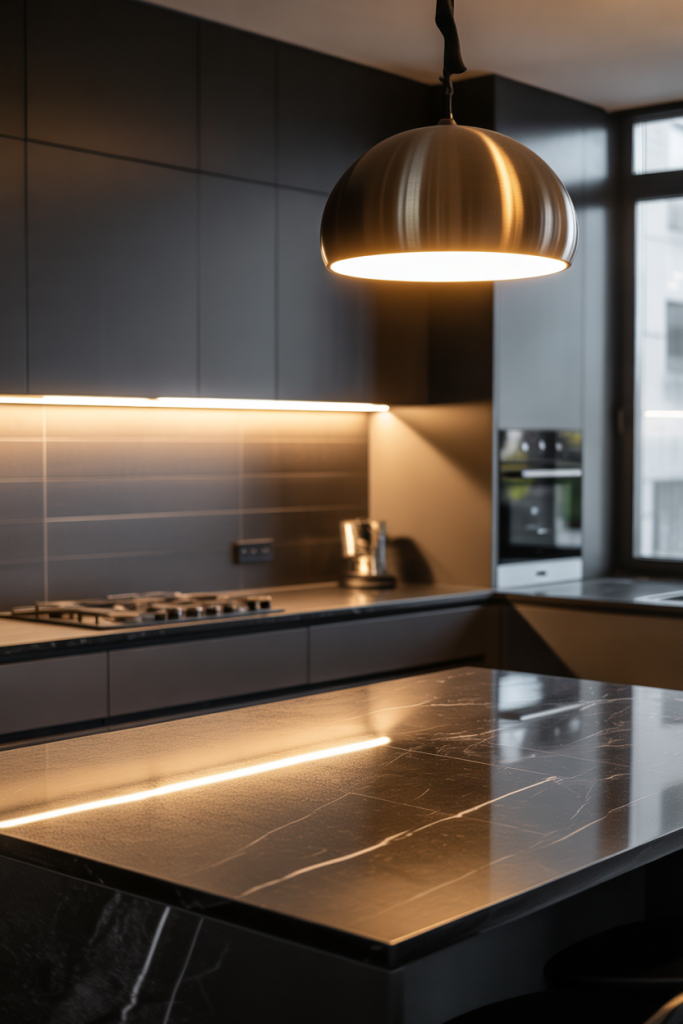 You are all about drama; then here is a play of moody palettes for you. Deep charcoal or espresso cabinets paired up with black slab details feel mysteriously inviting. Actually, a rich top paired with dark counters will give you a total cocooning modern effect. This feels even cinema and very personal to really take heads.