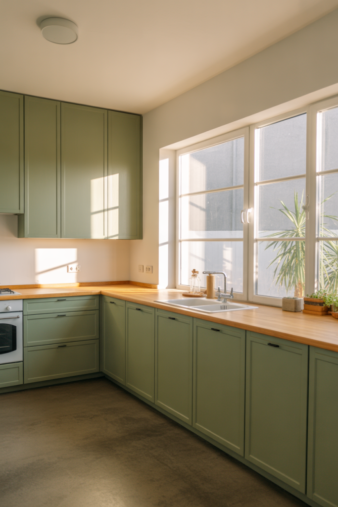 Green shades have been conquering modern kitchens for a while: from sage to olive. These colors establish calm vibes while feeling strikes ground and style. They are perfect alongside butcher block counters or concrete floors, instilling natural energy into your morning routine. The everlasting shade serves as a bridge between nature and design.