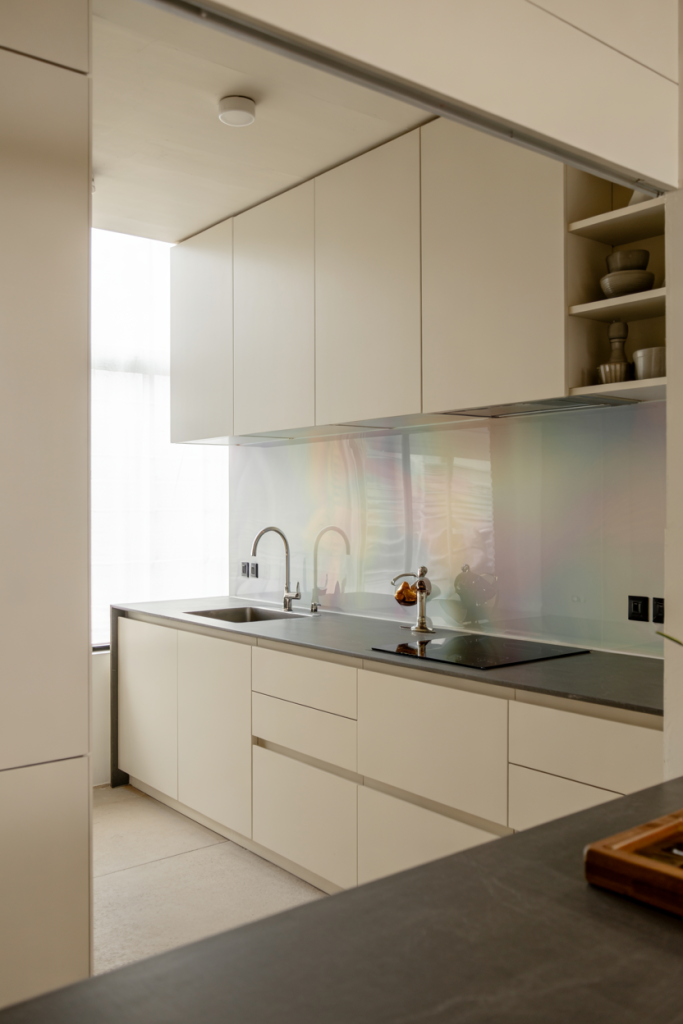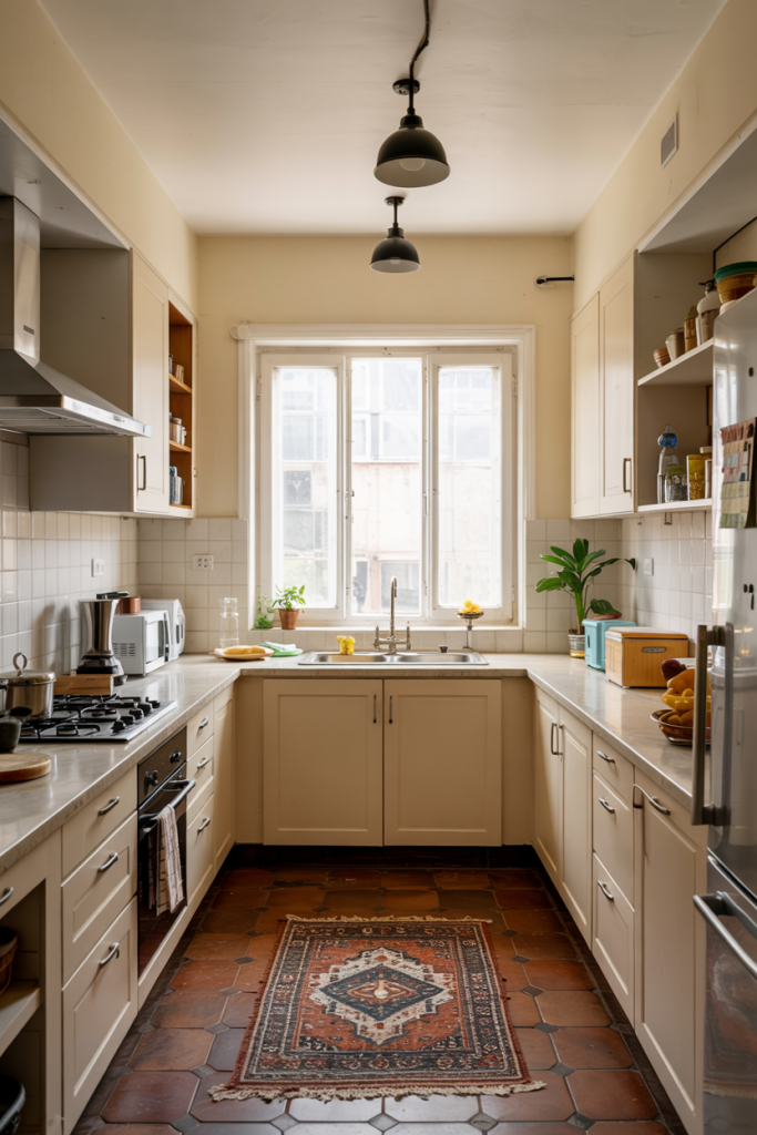 A parallel kitchen layout in 2026 gets a glamorous update — one side for cooking, the other for serving or display. Mixing wooden panels with sleek metal details enhances texture and rhythm. With window light streaming between both counters, the space feels both productive and relaxing — ideal for apartment living or compact homes.