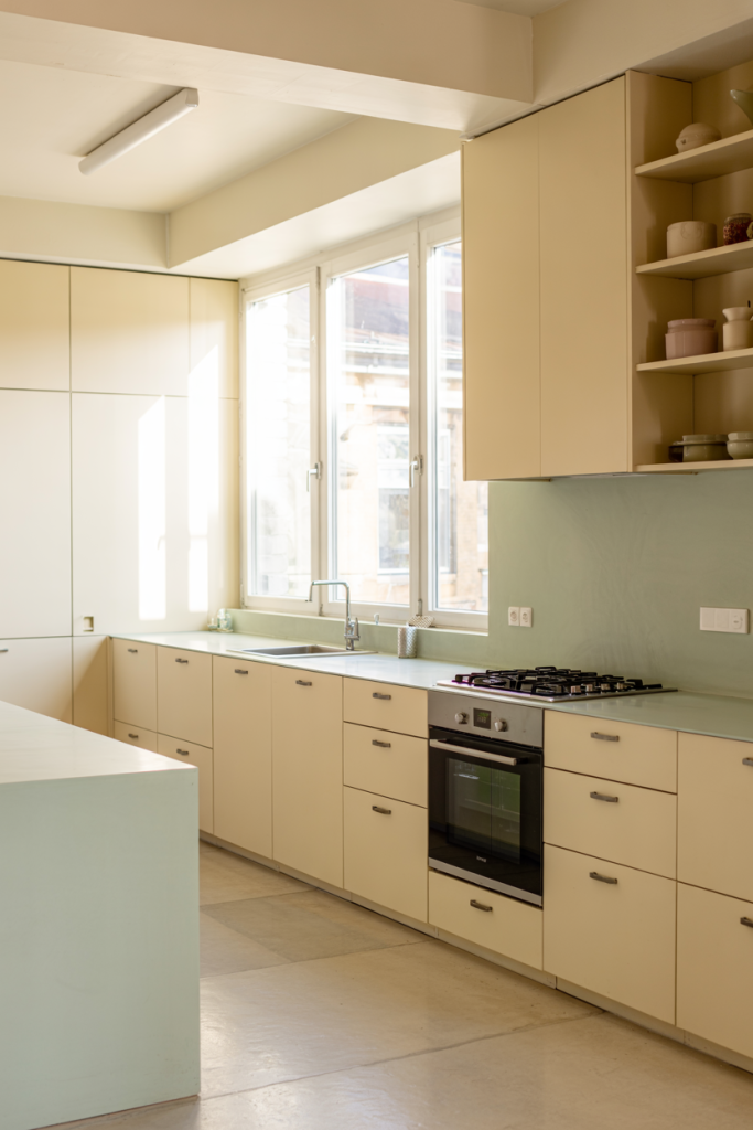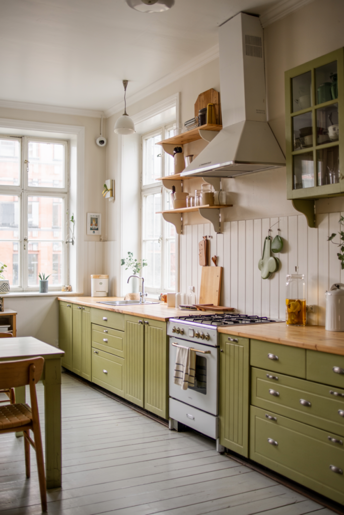 The color green brings calm and balance — a nod to biophilic design principles. Whether it’s sage, olive, or mint, ideas modern kitchens use green to connect with nature. Add plants near a window or complement green cabinetry with wooden textures for earthy charm. It’s a perfect choice for those seeking peace and creativity in daily life.