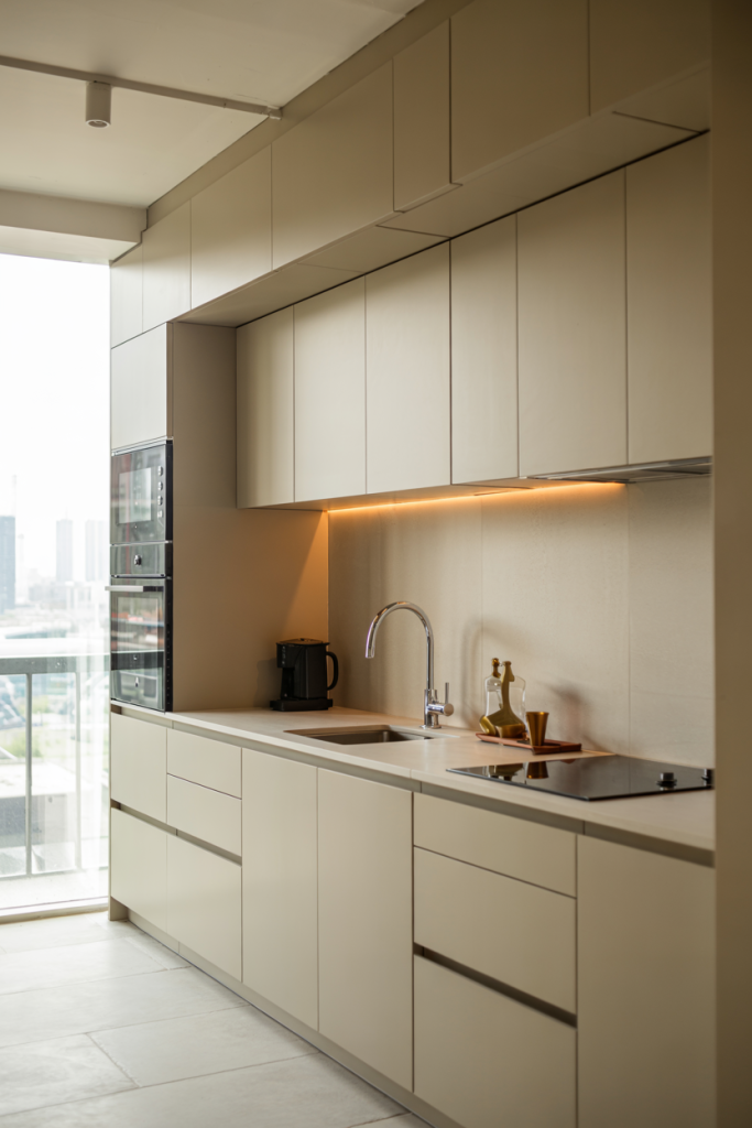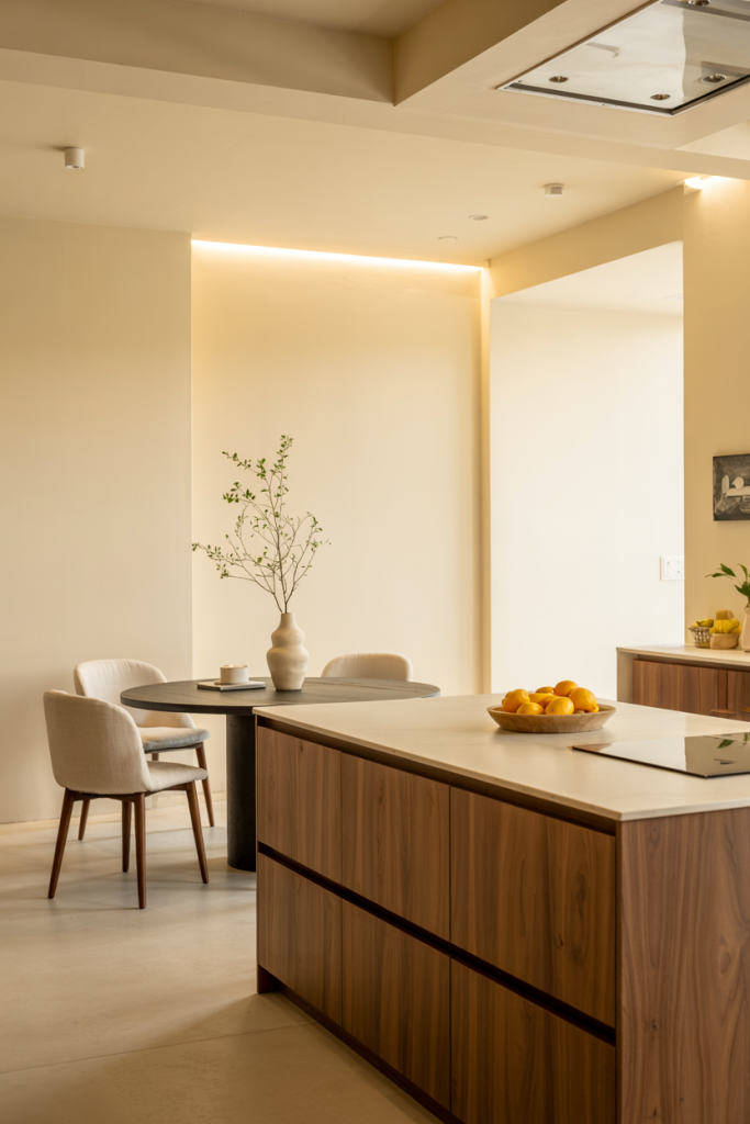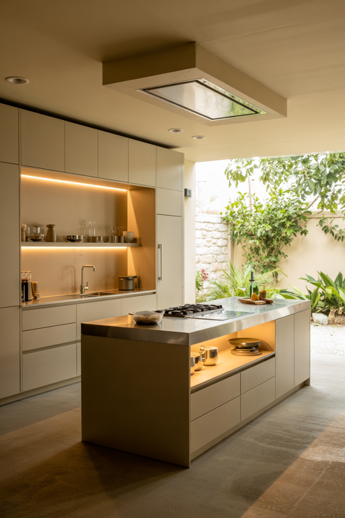 Modular kitchens continue to dominate urban living. Perfect for apartments or tight layouts, their flexibility lets you adjust cabinets, sink zones, and appliances effortlessly. The design modern luxury small space concept transforms compact kitchens into organized, stylish hubs. Clean, geometric fronts and under-cabinet lighting make every inch count.