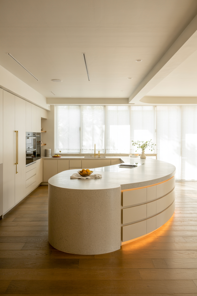 Toss the front-and-center straight lines — 2026 kitchens embrace front-and-center shaped islands. Curved countertops and asymmetrical styles bring movement and creativity into the home’s central hub. Ideal for open concepts, these designs bridge cooking, dining, and social areas with ease. Dezeen designers note such organic shapes bring visual softness and dynamic energies into even smallest kitchens.