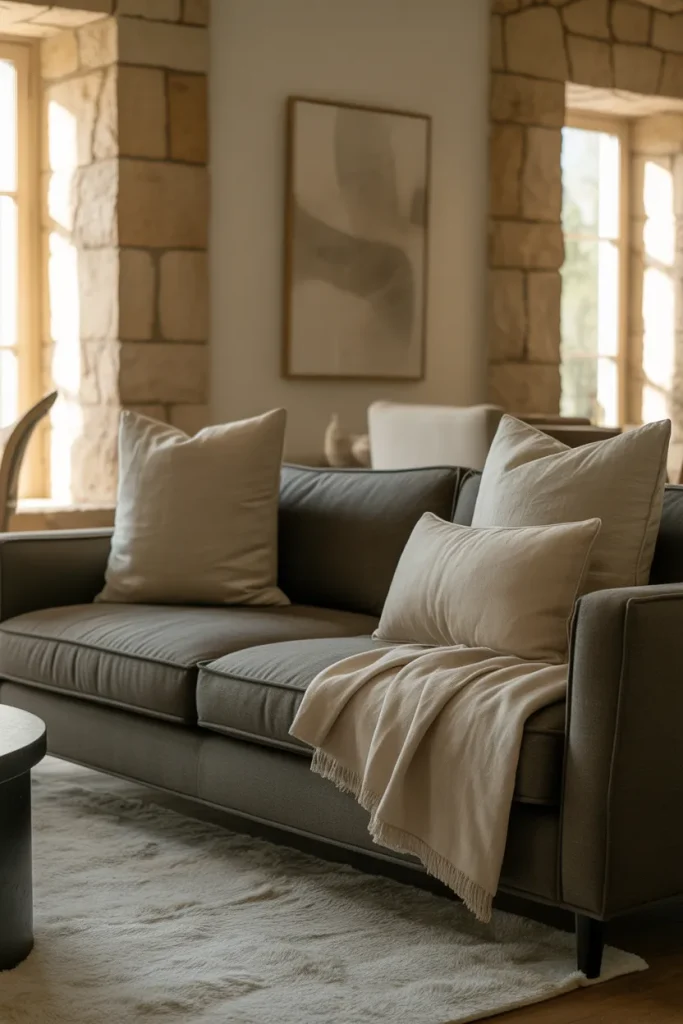 From an expert-style perspective, the key is contrast. Mixing matte and soft-sheen finishes, warm woods, and tactile fabrics prevents gray from feeling cold. Designers often recommend adding at least one warm element, such as oak or brass, to balance the cooler tones and keep the space inviting.