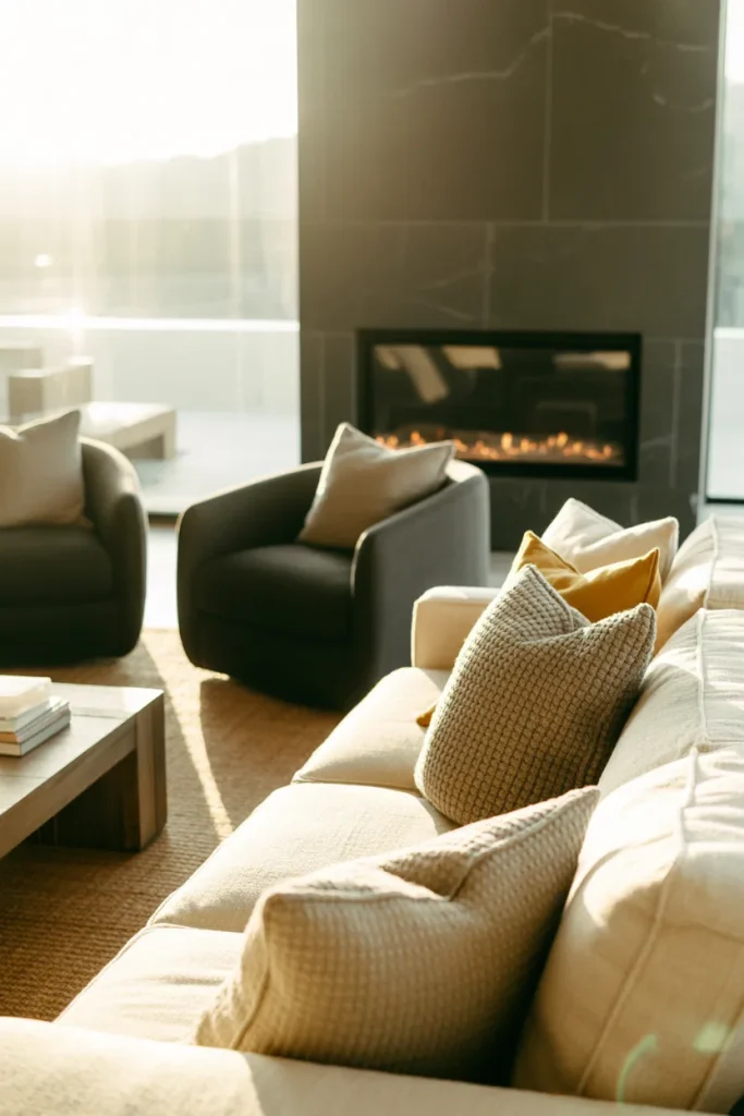 Real homeowner behavior often centers around rearranging seating toward the fireplace, even when it’s not in use. People naturally gravitate to it for conversation and relaxation, making it one of the most socially effective design features in a living room.